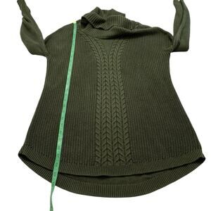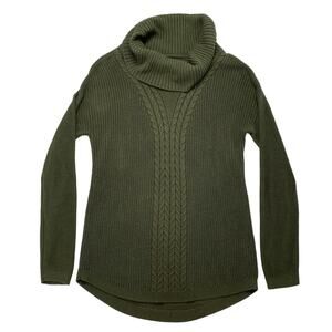 BANANA REPUBLIC Olive Green Cable Knit Turtleneck Sweater. Size Medium Womens. Cable design down center front. Cotton-rayon blend. Excellent condition -- no rips, stains, or holes.