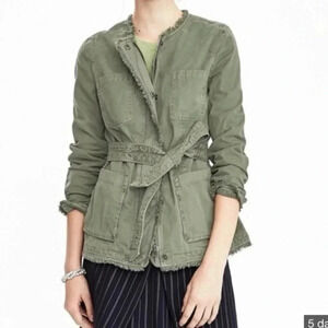 BANANA REPUBLIC Olive Green Utility Military Safari Belted Cargo Jacket Size XS