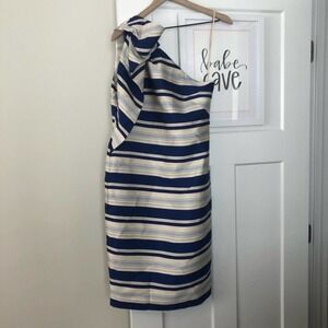 BANANA REPUBLIC One Shoulder Bow Stripe Dress Size 4 NEW
