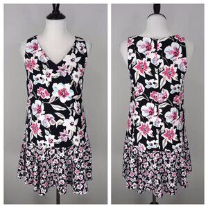 BANANA REPUBLIC Pink Floral Peplum V-Neck Sleeveless Flounce Hem Dress Sz 0