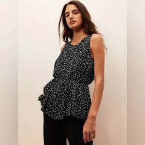 BANANA REPUBLIC Pleated Top in Black Dot