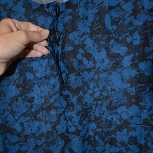 BANANA REPUBLIC Polyester Blue Black Floral Prints Buttons See-Through Blouse S