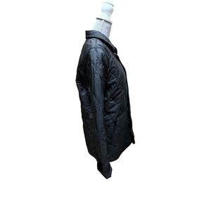 Step out in timeless style with this classic Banana Republic quilted jacket. Crafted from lightweight, water-resistant nylon with a diamond quilt pattern, this jacket offers both warmth and sophistication. Features a collared neckline, full button front, front pockets, and a sleek black finish that pairs effortlessly with any outfit.