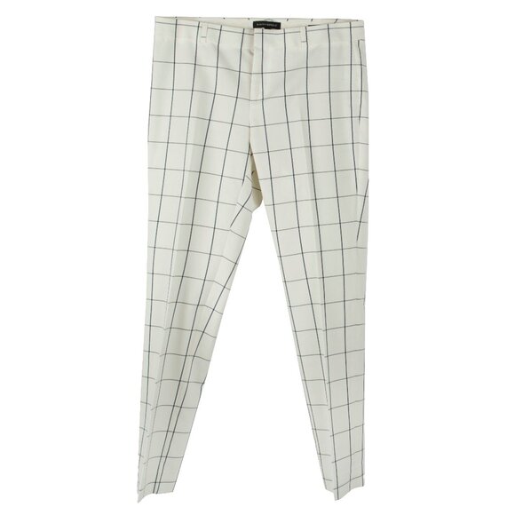 BANANA REPUBLIC Ryan Trousers Pants Ivory Windowpane Check Charcoal Gray 8