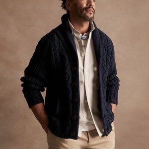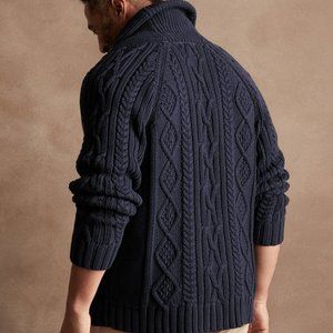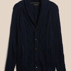 BANANA REPUBLIC SHAWL-COLLAR CHUNKY CABLE KNIT ORGANIC COTTON CARDIGAN