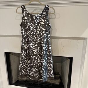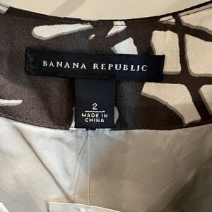 BANANA REPUBLIC Silk Dress Size 2 Brown Ivory Print V Neck Sleeveless