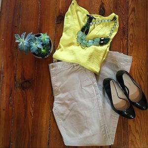 The most comfortable, flattering khakis! And they are Banana Republic so you know they are great quality. These are definitely the pants that you can wear time and time again. They stretch! Ready for your next business meeting or work trip.