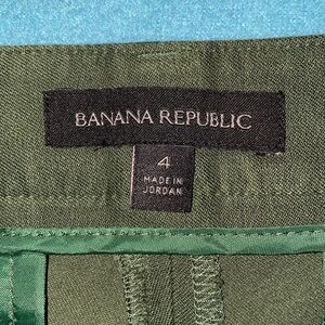 BANANA REPUBLIC Sloan olive color mid rise bi-stretch fabric, tailored skinny leg, working buttons at ankles, 2 front 2 back pockets, zipper button and hook closure, belt loops, soo cute!
