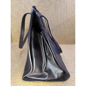BANANA REPUBLIC Smooth Black Leather Tote Bag With Zipper Closure & Dual Handles