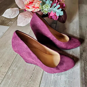 BANANA REPUBLIC Suede Round Toe Wedges Size 6 Wine Color