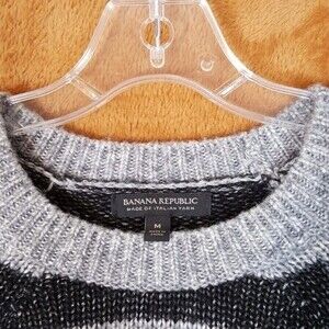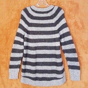 BANANA REPUBLIC Sweater Womens Medium Gray Stripe Wool Blend Pullover Tunic Knit