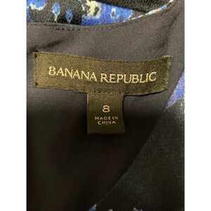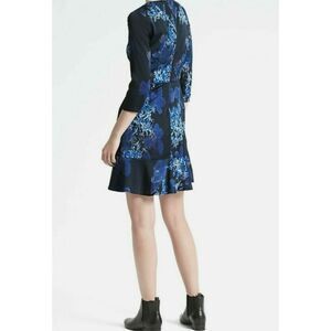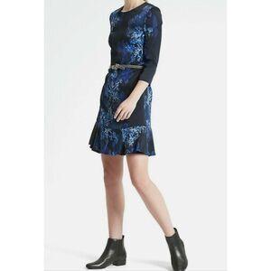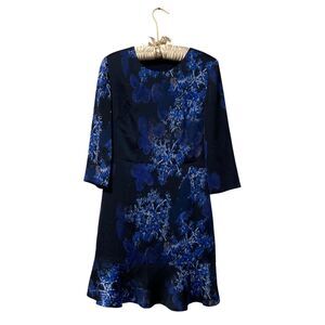 BANANA REPUBLIC Sz 8 FLORAL PRINT 3/4 SLEEVE FIT & FLARE DRESS BLUE