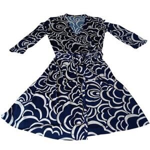 BANANA REPUBLIC True Wrap Dress Blue and White Floral Size XS V-Neck Surplice