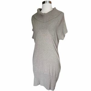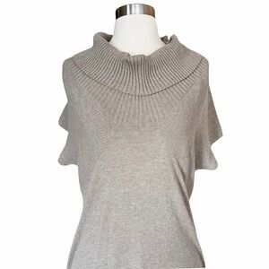 BANANA REPUBLIC Turtleneck Cowl Neck Sweater Dress Short Sleeves Tan Medium EUC