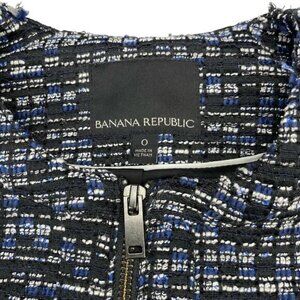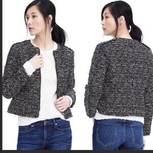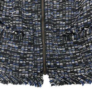 BANANA REPUBLIC Tweed Fringe Boucle Zip Navy Jacket Womens Size 0
