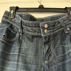 BANANA REPUBLIC URBAN FLARED LEG JEANS SIZE 10 dark wash double button on front