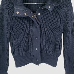 BANANA REPUBLIC Varo Ribbed Zip Crop Hooded Sweater Bomber XS Navy #509216-01