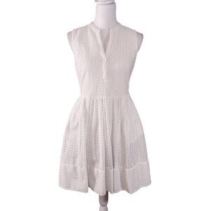 BANANA REPUBLIC! WHITEST WHITE COTTON EYELET, SLEEVELESS A-LINE DRESS! SZ 6