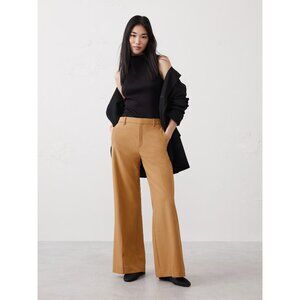 A modern staple reimagined in a warm, camel hue that whispers understated luxury. Signature sculpted bi-stretch fabric offers the most luxuriously lightweight blend of comfort and style in sharp, tailored silhouettes. Designed with a fluid wide-leg silhouette and infused with just the right amount of stretch, this pant balances comfort with poise. The high-rise waistband cinches gently at the waist, creating a flattering line that elongates the frame.