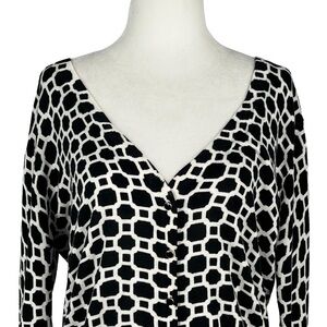 BANANA REPUBLIC WOMEN'S GEOMETRIC PATTERN WOMEN'S CAREER/OFFICE WEAR CARDIGAN ▫️ Size Large ▫️ Color Black & White▫️ Excellent Condition ▫️ No Holes, Rips, Tears or Stains ▫️Will be packaged with care and shipped within 2 days ▫️Ships from smoke free home ▫️ Machine Wash▫️Measurements on request ▫️Thank you for shopping Ellah Ann's Closet.