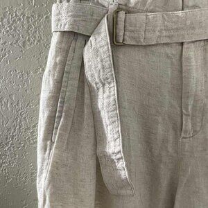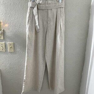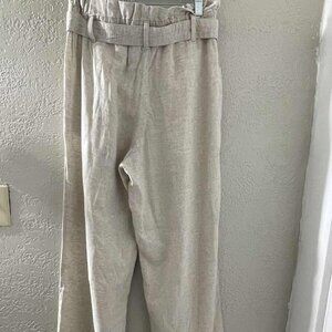 BANANA REPUBLIC WOMEN'S KHAKI WIDE-LEG BELTED PANT SIZE 2 LINEN BLEND