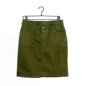 BANANA REPUBLIC Washed Army Green Snap Button Utility Pencil Skirt 8 Medium