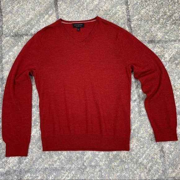 BANANA REPUBLIC Women 100% Merino Wool Thin knit Sweater RED V- Neck L