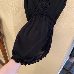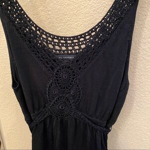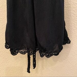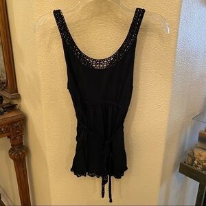 Pre-owned in great condition with no rips or stains. Nice black semi-sheer tank top with crochet detailing and tie in the back. Fits a little small, more like Xsmall. Nice stretchy material. Dry clean. Comes from smoke and pet free home.