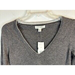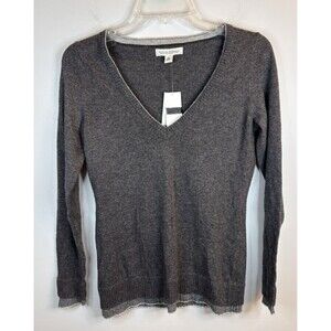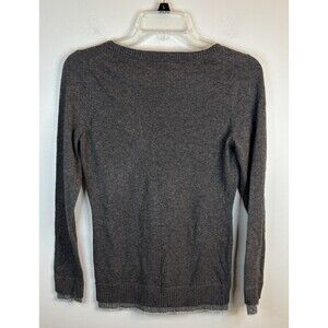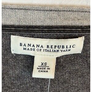 BANANA REPUBLIC Women Gray Double Trim V-Neck Sweater XS Lightweight Wool Blend