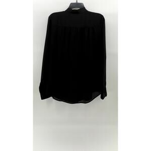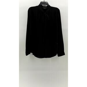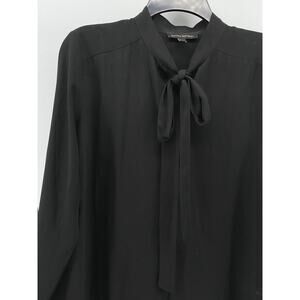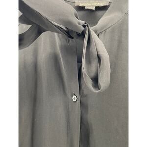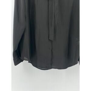 BANANA REPUBLIC Women's Black Tie-Neck Long Sleeve Semi Sheer Button-Up Top SZ M