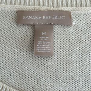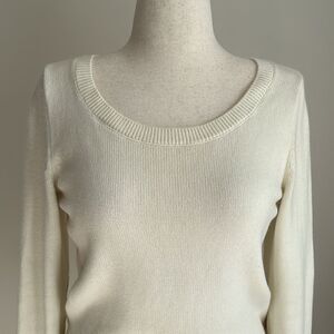 BANANA REPUBLIC Women’s Cream Sequined Elbow Patch Crewneck Sweater Size M