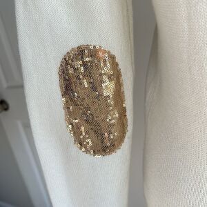 BANANA REPUBLIC Women’s Cream Sequined Elbow Patch Crewneck Sweater - Size M