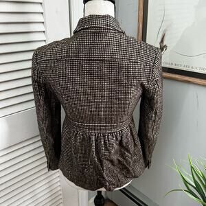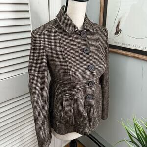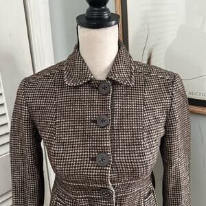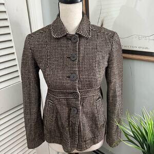 BANANA REPUBLIC Womens Jacket 0 Brown Tweed Houndstooth Wool Blend Preppy Office