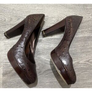 BANANA REPUBLIC Women's Ostrich Leather 4 Inch Heeled Shoes Brown Size 9