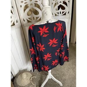 BANANA REPUBLIC Women’s Red Floral Navy Top Size Small Career Flowy