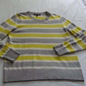 BANANA REPUBLIC Yellow Gray & White STRIPE MERINO WOOL Blend SWEATER Sz L