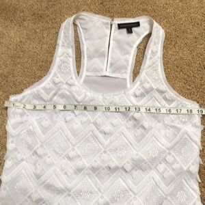 Banana Republic size medium white embroidered top with fringes. Lined front. Gently used, great condition.