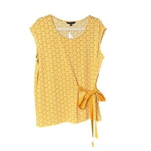 BANANA Republic Factory Size XL Yellow Flower Short Sleeve Shirt Office Bow