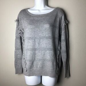BANANA Republic Gray Merino Wool Blend Sweater with Fringe Detail Size S