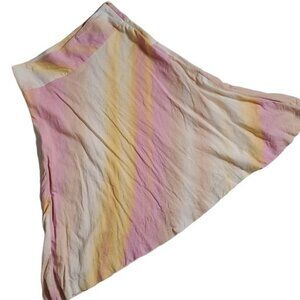 BANANA Republic Linen Cotton Blend Striped Pink Orange Spring A-Line Skirt Sze 0