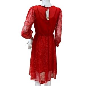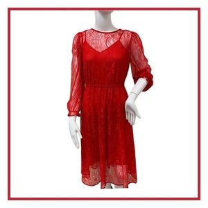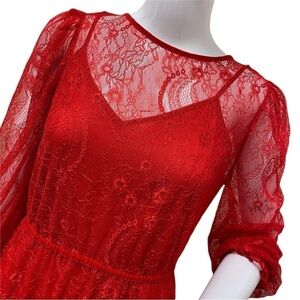 BANANA Republic Red Lace 2 Layered Long Sleeve Dress Size XS