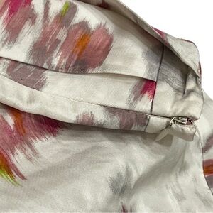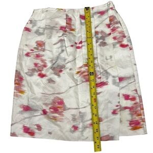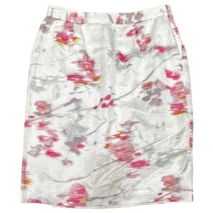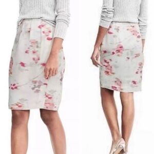 *Banana Republic abstract floral watercolor pencil skirt in white, pink, and gray. This is a faux wrap pencil skirt with side pleat details and pockets. Size 0. Retails $88. Fully lined with invisible side zip closure.
