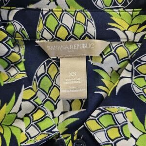 BANANA Republic Womens Size XS Pineapple Print Tie Blouse Preppy Resort Beach