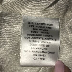 Sculpted coat with shoulder pads, 2 deep pockets, fully lined, 3 front buttons, 2 buttons on cuff (see measurements, sleeves have been shortened/altered)