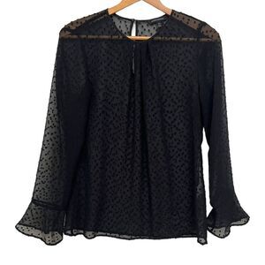 Banana Republic Blouse, Black, Sheer, Swiss Dot, Bell Sleeves Size XS