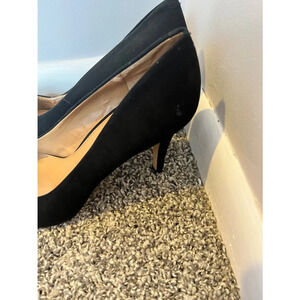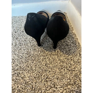 Banana republic suede black pumps size 10. Chrome around the heel. Inside is peeling. Some marks on fabric.