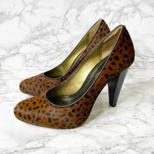 BANANA REPUBLIC Calf Hair Leopard Almond Toe Heels Size 6 Mob Wife