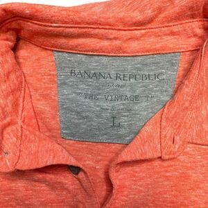 BANANA REPUBLIC Men’s Grapefruit Orange Seaside Short Sleeve 2 Button Placket Light Gray Inner Collar Polo Shirt Size Large