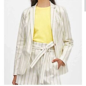 🆕 BANANA REPUBLIC women’s neon lime stripped LONG & LEAN-FIT STRIPE BLAZER sz 8