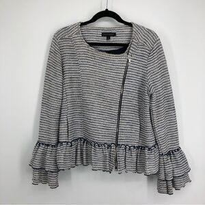 BANANA REPUBLIC Ruffle Boucle Jacket Asymmetrical Zip Womens Size 10